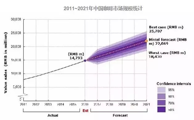 随着消费升级和饮用咖啡的普及,预计未来五年内,中国的咖啡市场仍将保持较高的增速,年复合增长率将保持在8.3%左右,到2021年,中国咖啡市场规模将达220.69亿元人民币。
