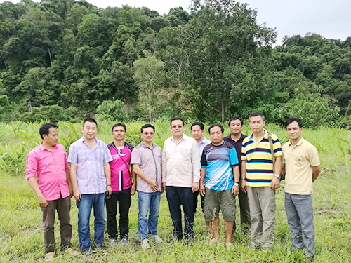 7月7日,孟桑盘县副县长坎奔、公司总经理尹新华、老挝咖啡公司总经理谢友信一行到孟桑盘县南里就咖啡标准化加工厂厂址选址等事宜进行协商确认。