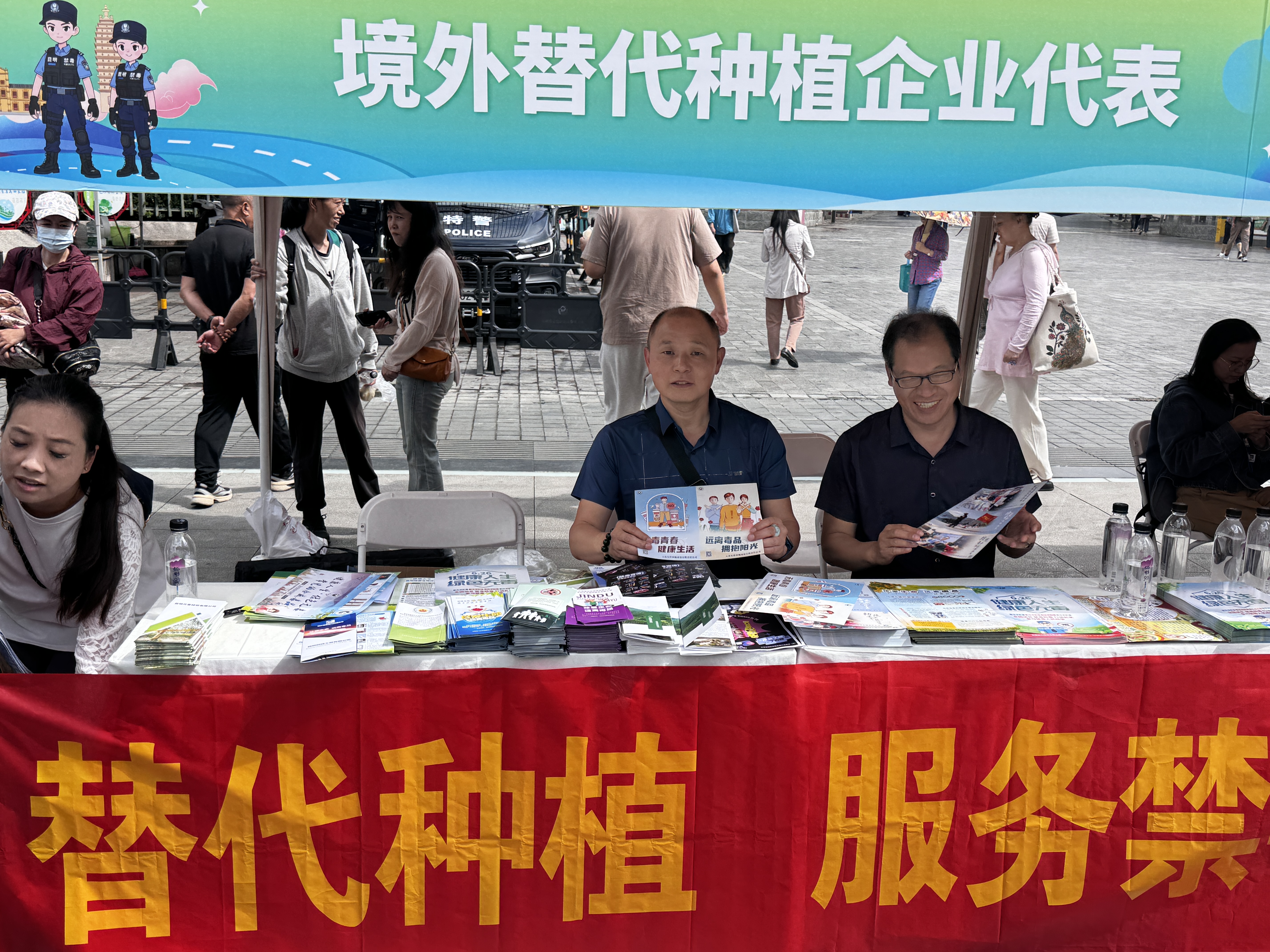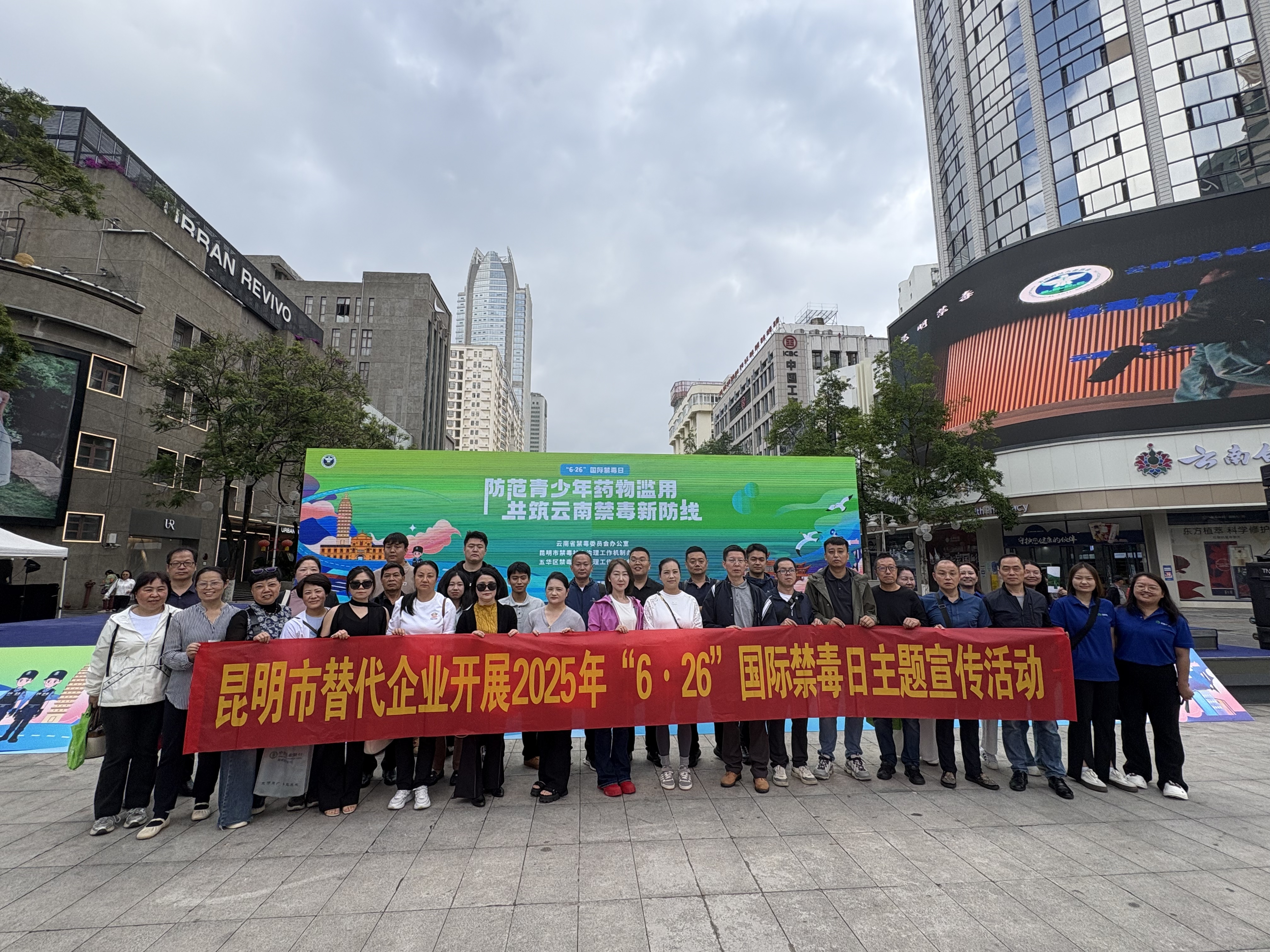2025年6月26日上午,云南昌胜达投资有限公司参加了由云南省禁毒委员会办公室、昆明市禁毒社会治理工作机制办公室、五华区社会治理工作机制办公室在昆明南屏街组织的防范青少年药物滥用暨恭祝云南禁毒新防线活动。南屏街作为昆明市的繁华商业中心,人流量大,宣传效果显著。现场大屏幕轮番播放禁毒宣传片,“替代种植,服务禁毒” 的标语格外醒目。